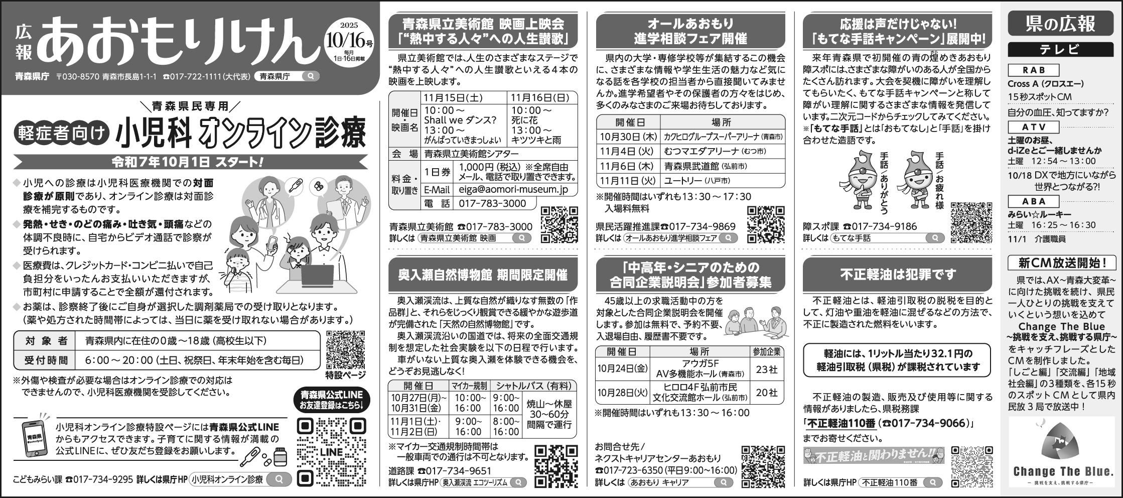 新聞広報「広報あおもりけん」10月16日号を掲載しました